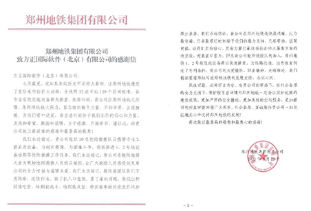 郑州地铁集团有限公司表示:“贵公司在郑州地铁处境最艰难、压力最空前、任务最艰巨时刻给予我们的鼎力支持、无私帮助、温暖祝福,让我们更有信心、更有力量打赢这场抗击特大暴雨灾害的攻坚战,迎来碧日蓝天。”
